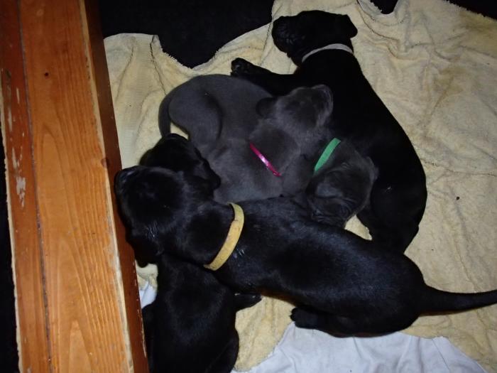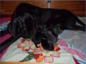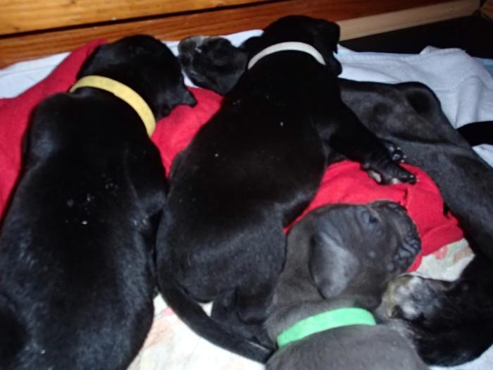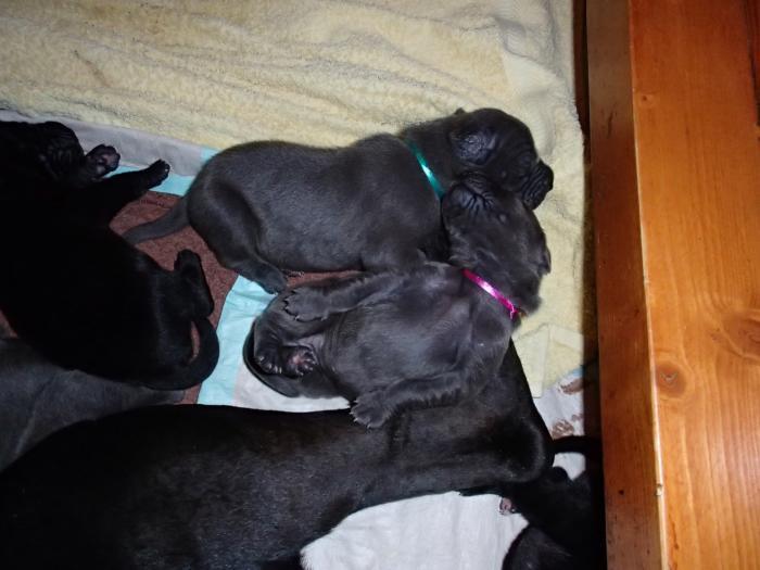 Hündinnen schwarz: 3 - weiß - gelb - rosa