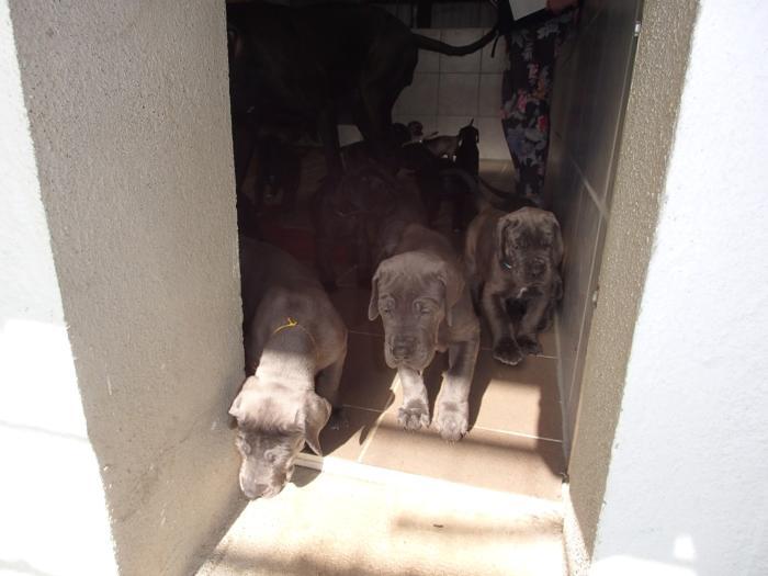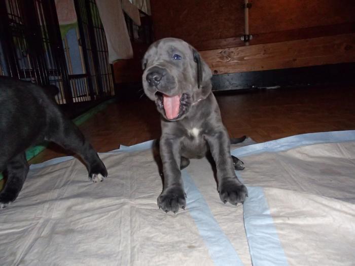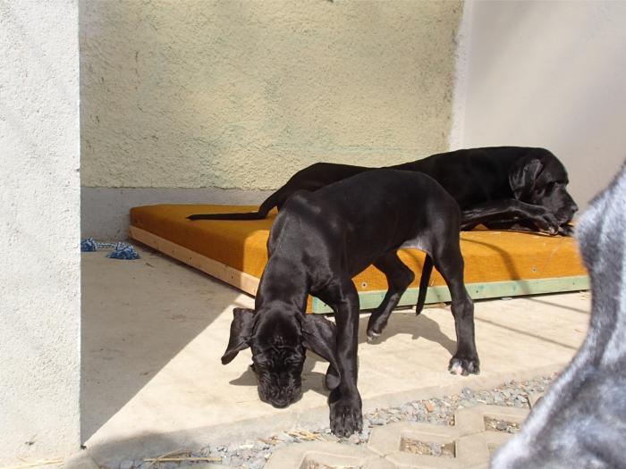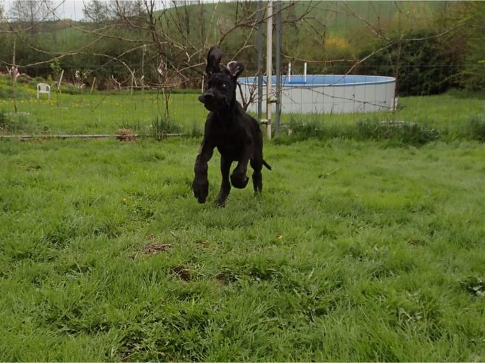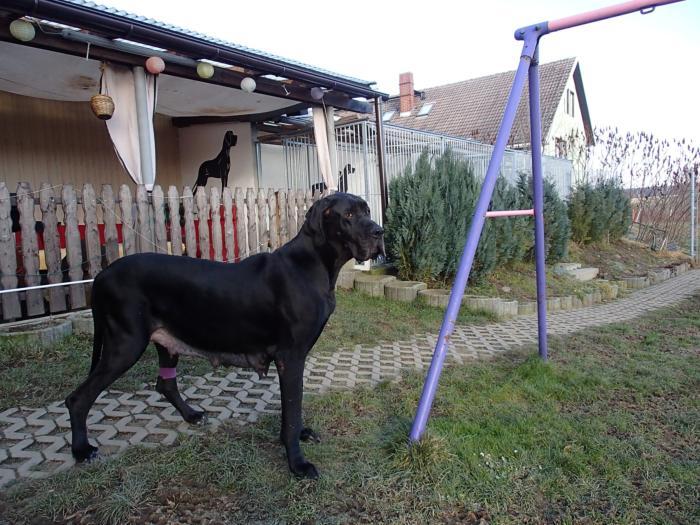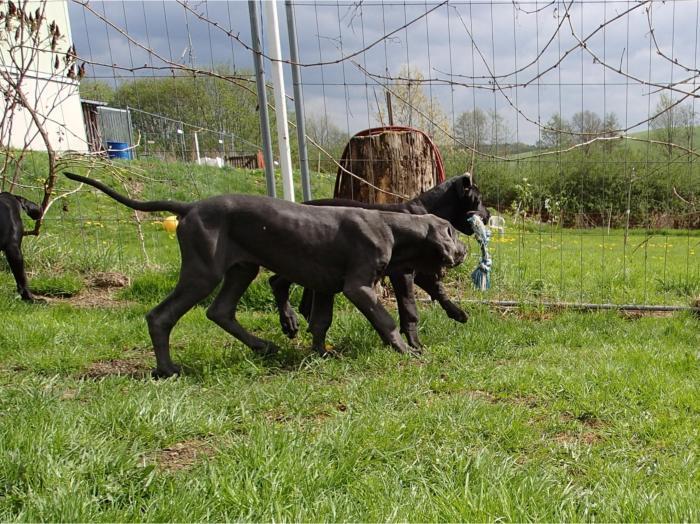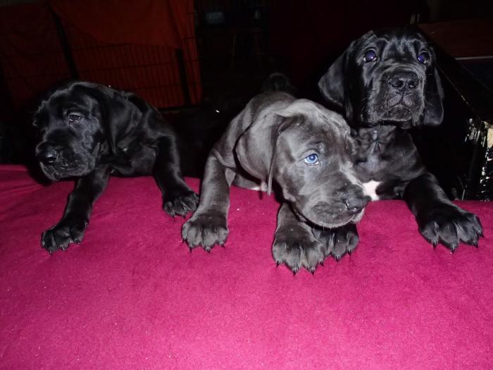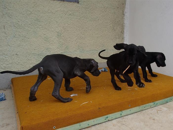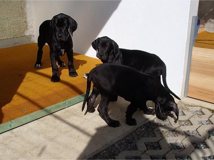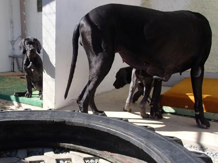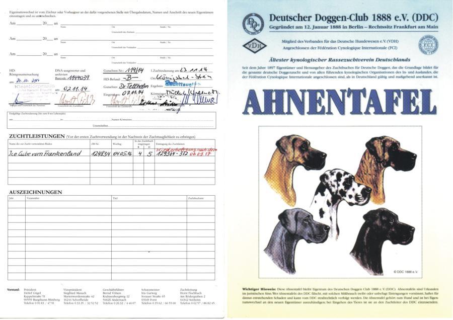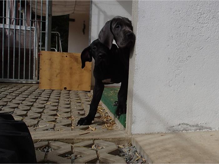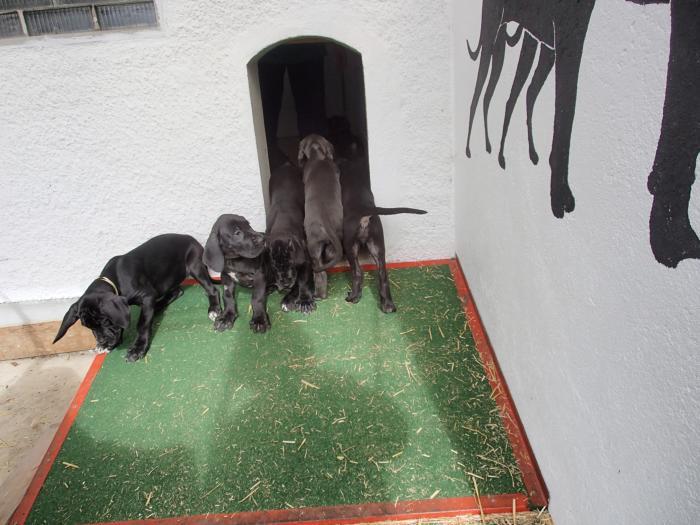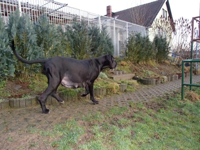 copyright Deutsche Doggen von Betz’ens MeuteHallo Fanta,ich war zur Sicherheit zweimalbei meiner Frauenärztin.Bisher ist alles in Ordnungund ein paar schöne Bilderhabe ich auch bekommen.Die Ultraschallbilder vom22. Tag sagen noch nicht vielaus, aber bei der Röntgenauf-nahme vom 48. Tag kannst duselber nachzählen wie oftDu mit einem Mal getroffen hast.