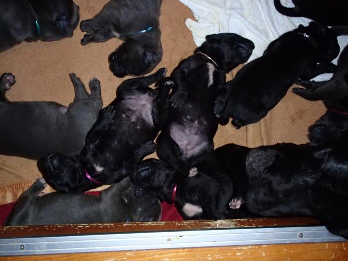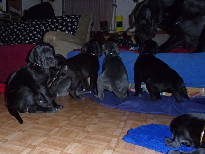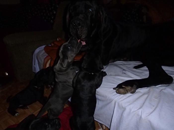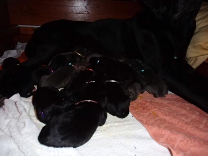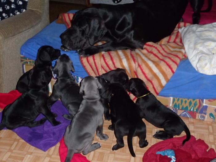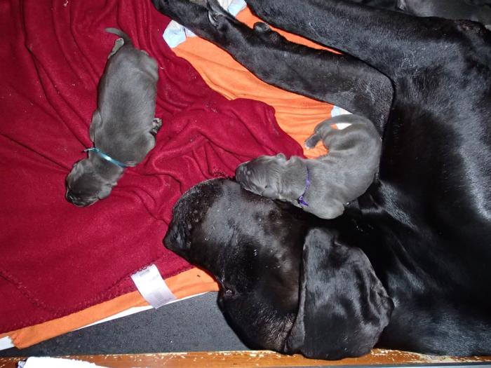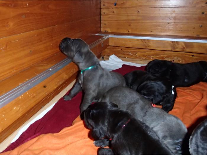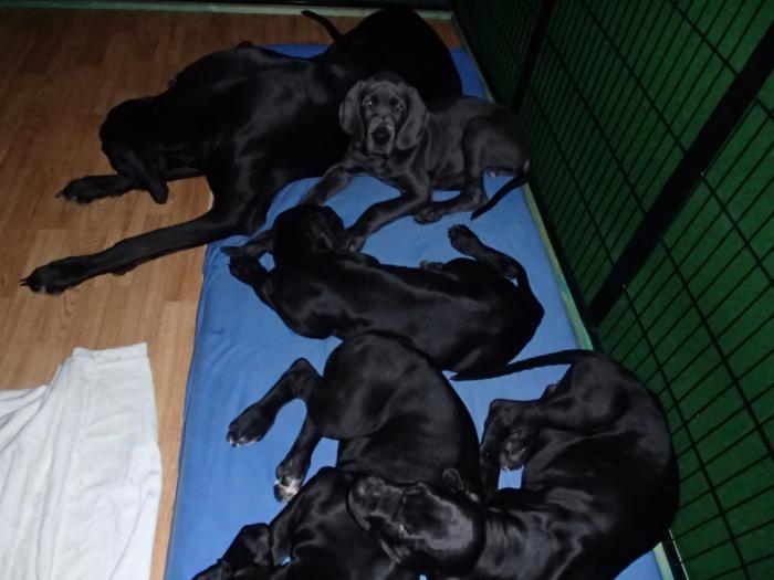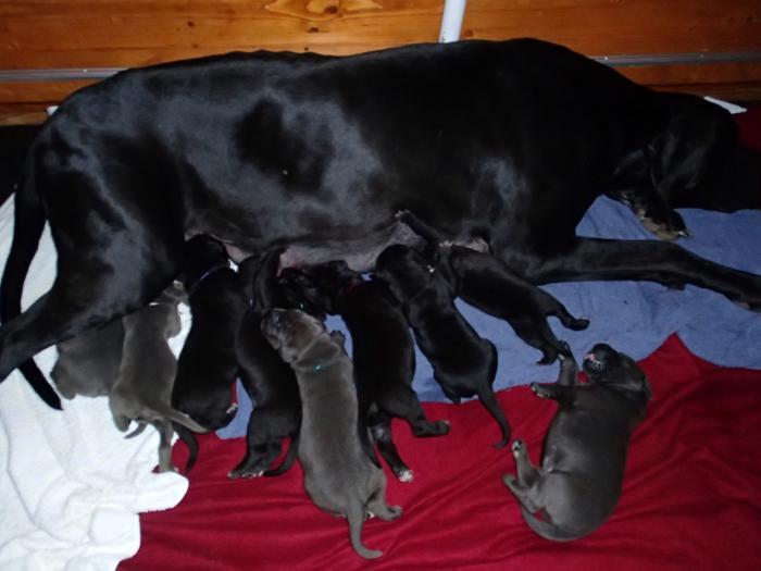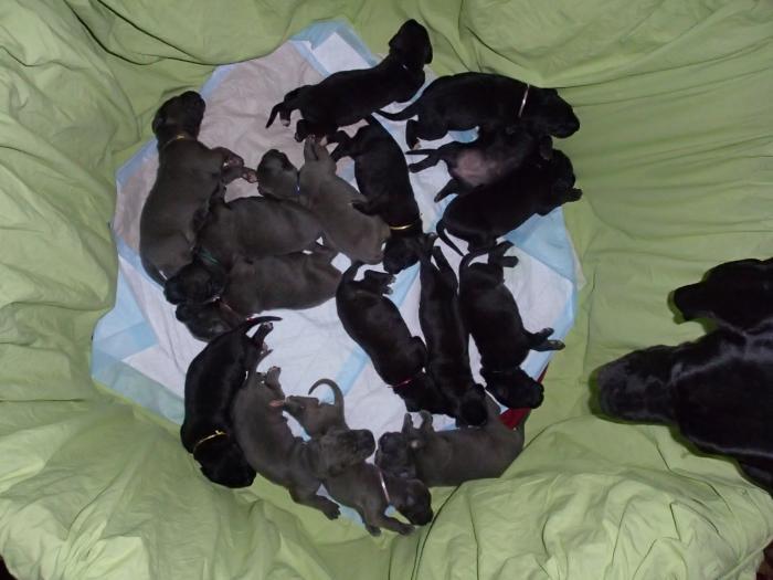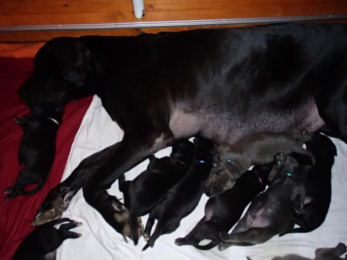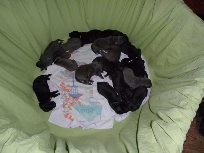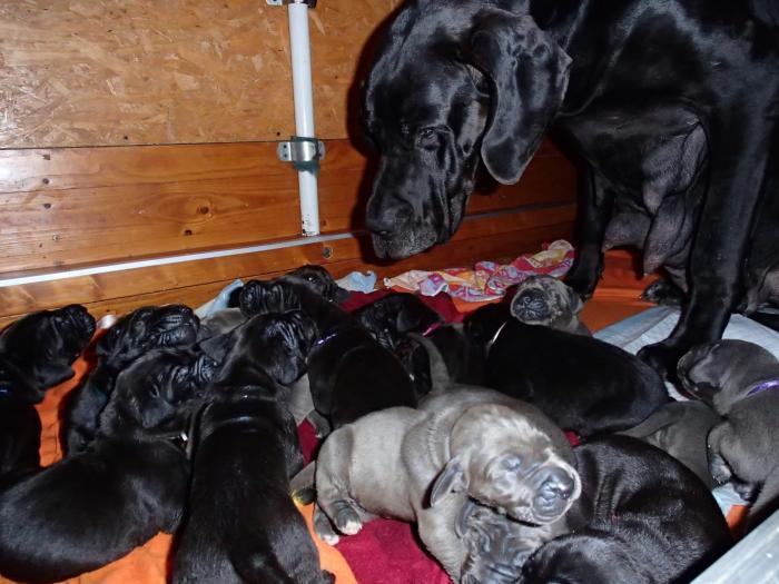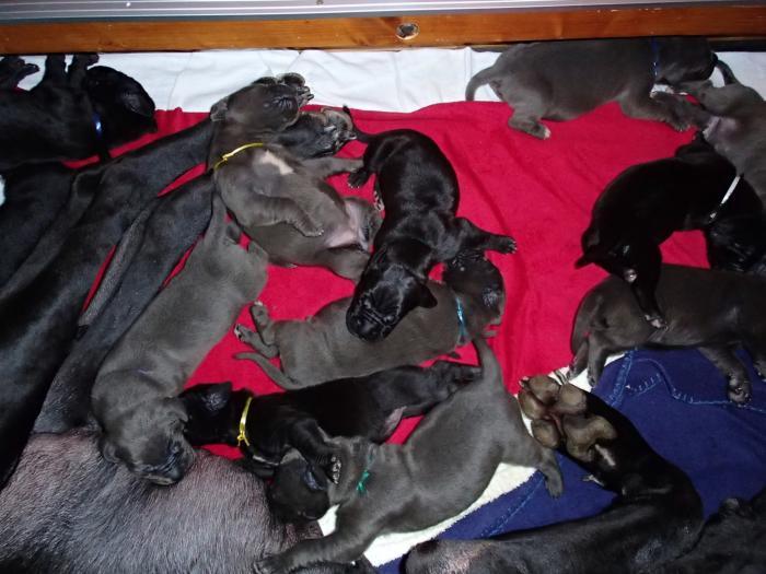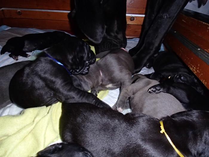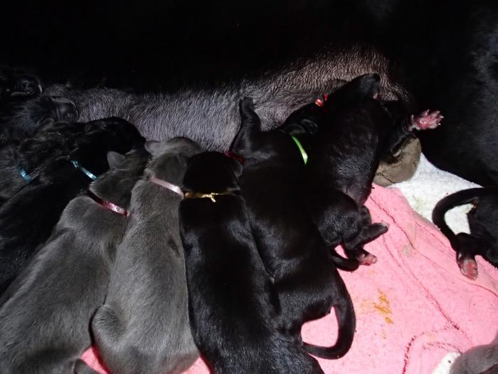 Heute, am 10.01.2018, war es soweit. Es kam die Stunde der Warheit und hier die Auflösung unseres Röntgenbildrätsels.4 Rüden blau 3 Hündinnen blau 3 Rüden schwarz 6 Hündinnen schwarz Mutter und Kinder sind wohlauf und sobald wir durchgeatmet haben, bekommt ihr natürlich täglich neue Bilder. Jetzt heißt es erst eimal die stolze Mama zu unterstützen. Das bedeutet 8 mal am Tag zufüttern.Wir möchten noch einmal allen Besuchern unserer Webseite deutlich machen, dass wir hier Schnappschüsse (also das wahre Leben) einstellen und keine Studioaufnahmen. Auch wenn wir ständig die Unterlagen wechseln, so ist uns doch der Moment des Motives wichtig und wenn da ein Fleck ist, dann ist das eben so.