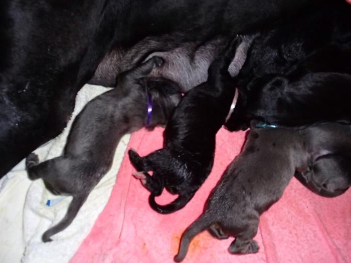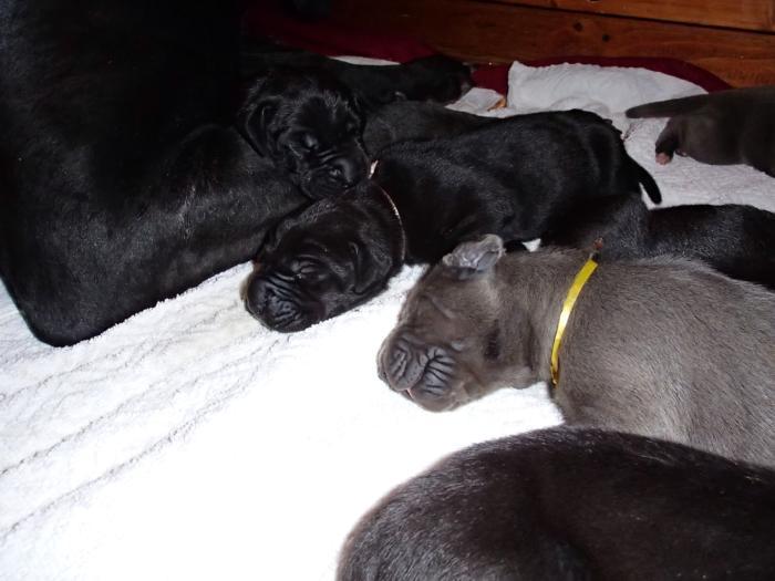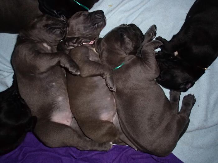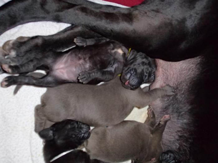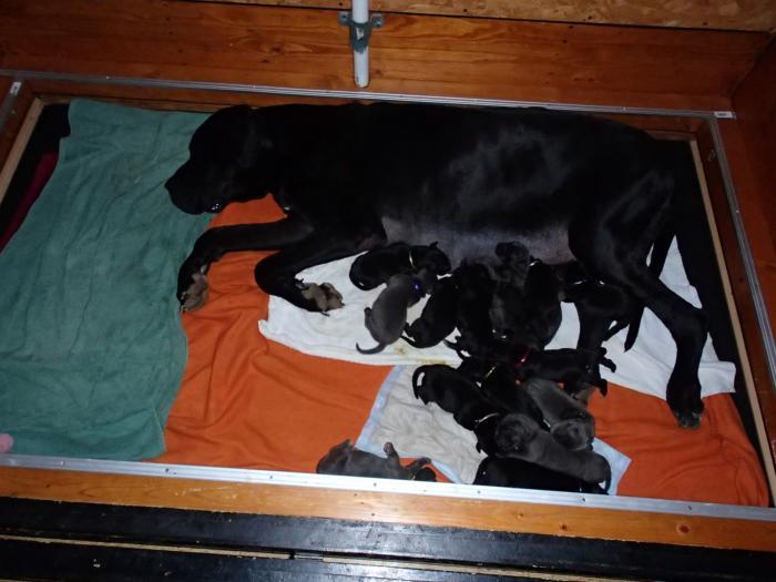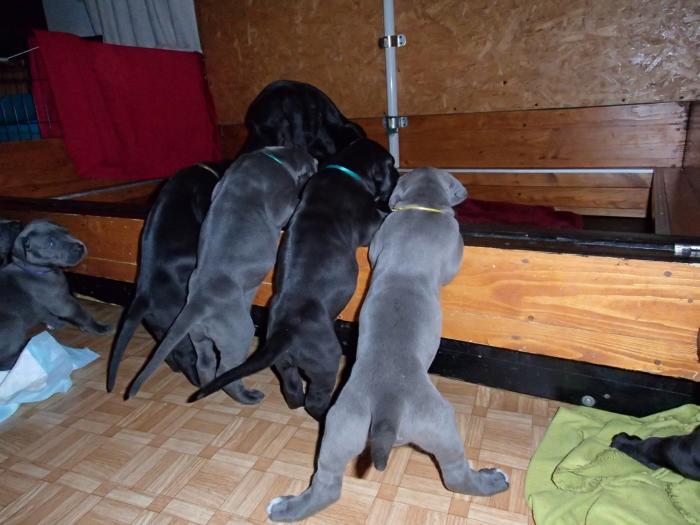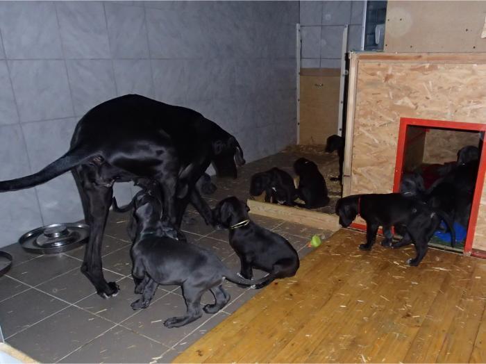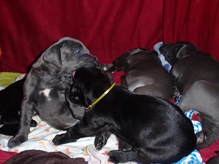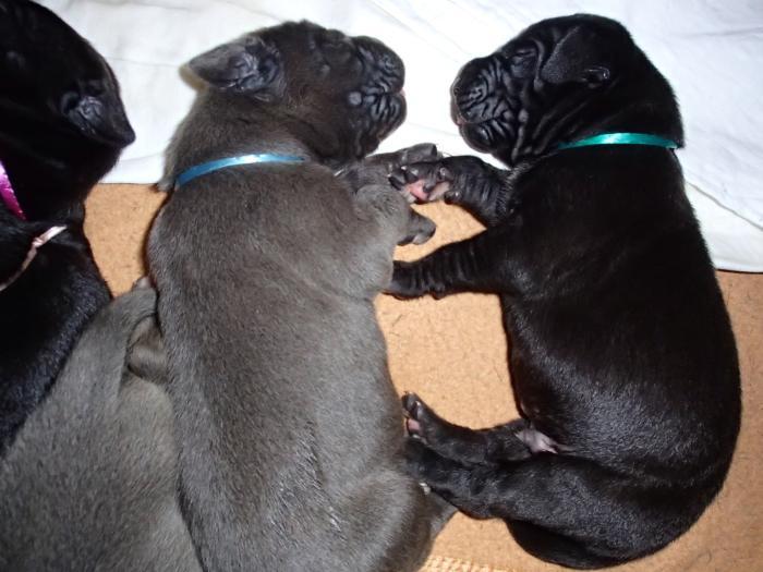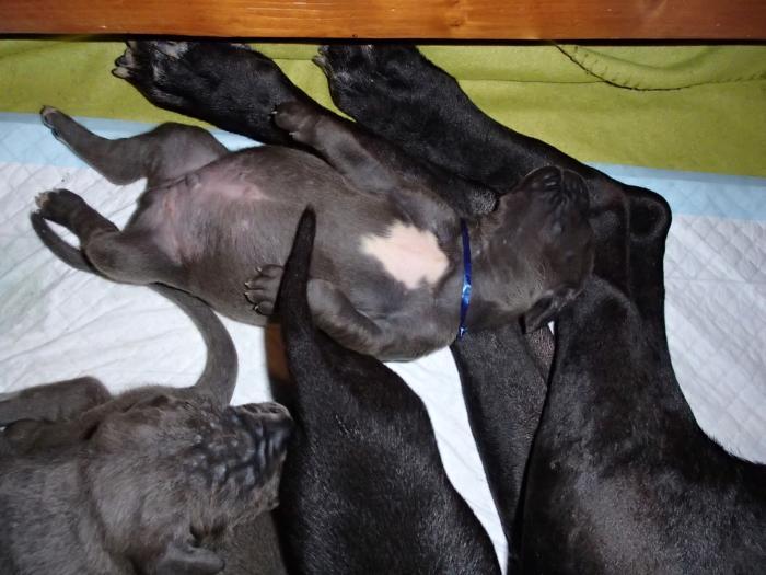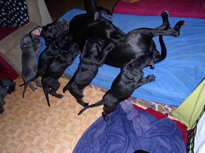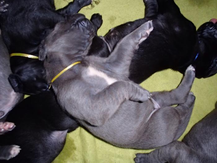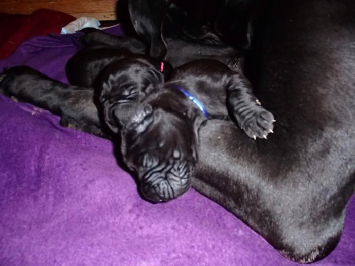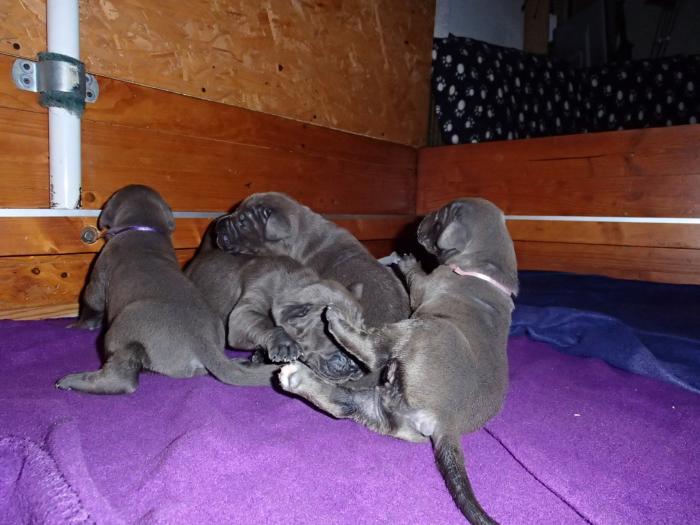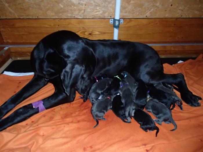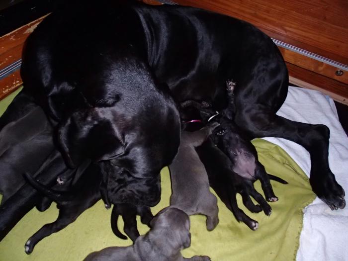 Heute, am 10.01.2018, war es soweit. Es kam die Stunde der Warheit und hier die Auflösung unseres Röntgenbildrätsels.4 Rüden blau 3 Hündinnen blau 3 Rüden schwarz 6 Hündinnen schwarz Mutter und Kinder sind wohlauf und sobald wir durchgeatmet haben, bekommt ihr natürlich täglich neue Bilder. Jetzt heißt es erst eimal die stolze Mama zu unterstützen. Das bedeutet 8 mal am Tag zufüttern.Wir möchten noch einmal allen Besuchern unserer Webseite deutlich machen, dass wir hier Schnappschüsse (also das wahre Leben) einstellen und keine Studioaufnahmen. Auch wenn wir ständig die Unterlagen wechseln, so ist uns doch der Moment des Motives wichtig und wenn da ein Fleck ist, dann ist das eben so.