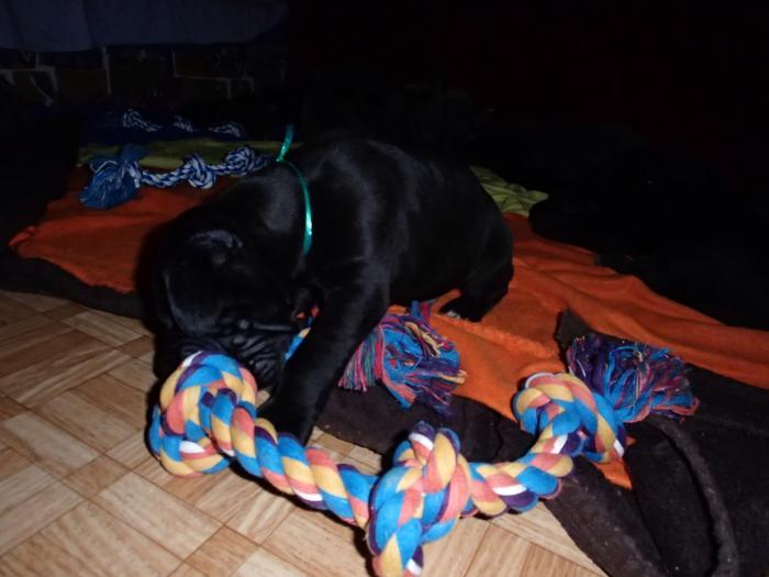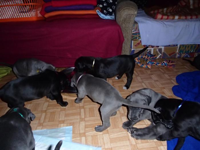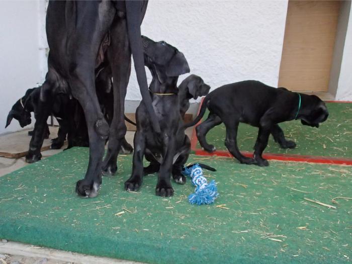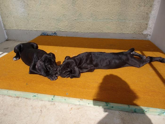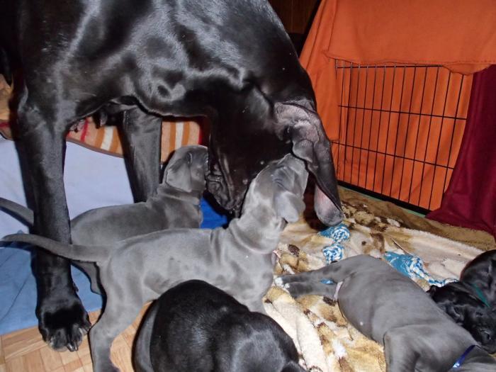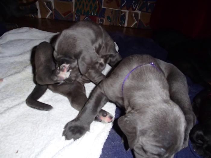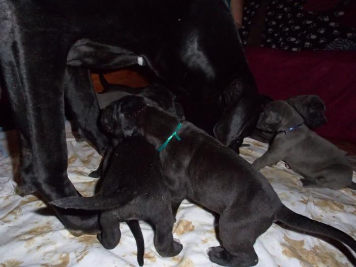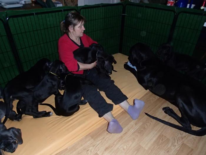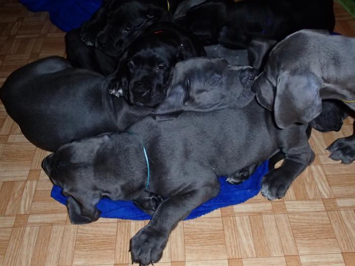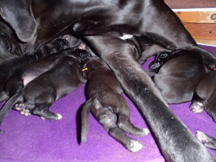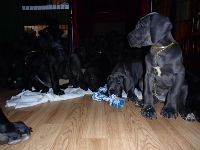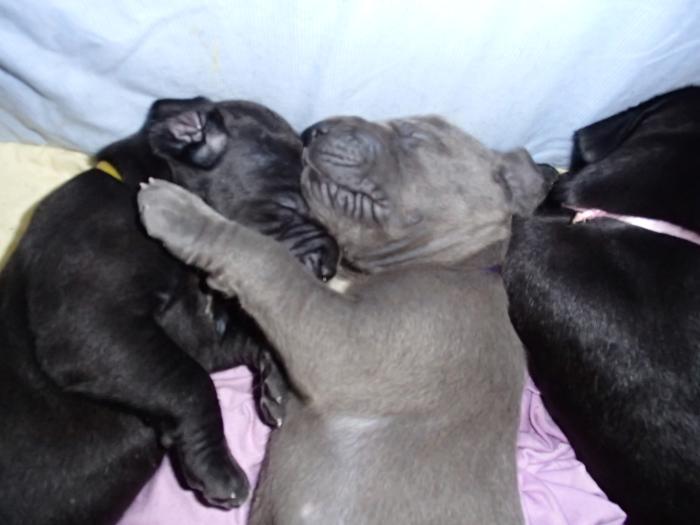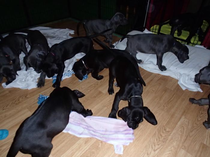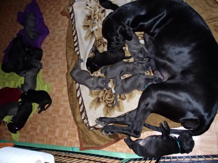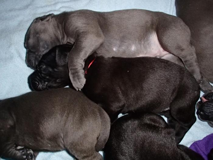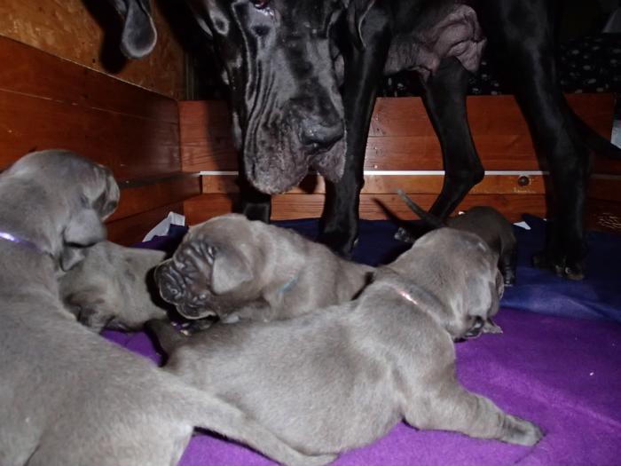 Heute, am 10.01.2018, war es soweit. Es kam die Stunde der Warheit und hier die Auflösung unseres Röntgenbildrätsels.4 Rüden blau 3 Hündinnen blau 3 Rüden schwarz 6 Hündinnen schwarz Mutter und Kinder sind wohlauf und sobald wir durchgeatmet haben, bekommt ihr natürlich täglich neue Bilder. Jetzt heißt es erst eimal die stolze Mama zu unterstützen. Das bedeutet 8 mal am Tag zufüttern.Wir möchten noch einmal allen Besuchern unserer Webseite deutlich machen, dass wir hier Schnappschüsse (also das wahre Leben) einstellen und keine Studioaufnahmen. Auch wenn wir ständig die Unterlagen wechseln, so ist uns doch der Moment des Motives wichtig und wenn da ein Fleck ist, dann ist das eben so.