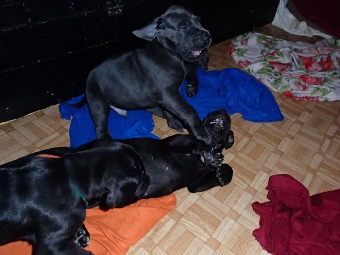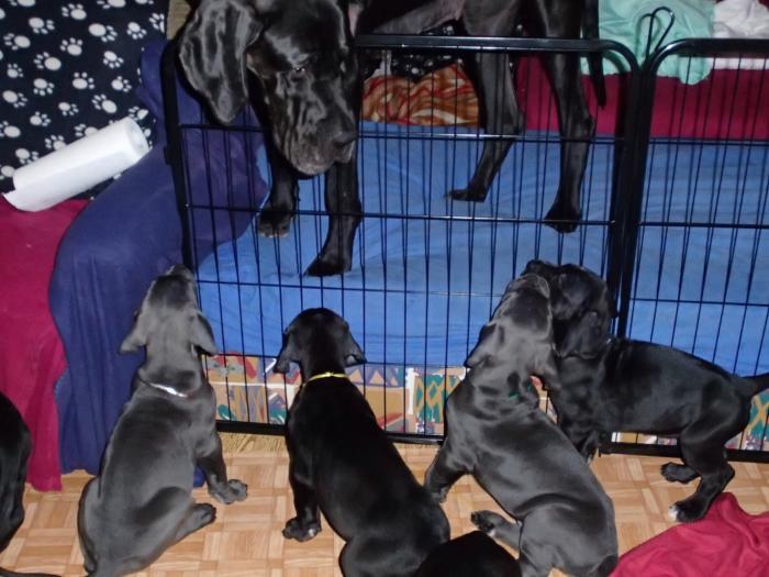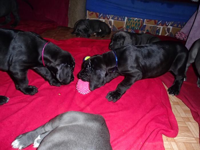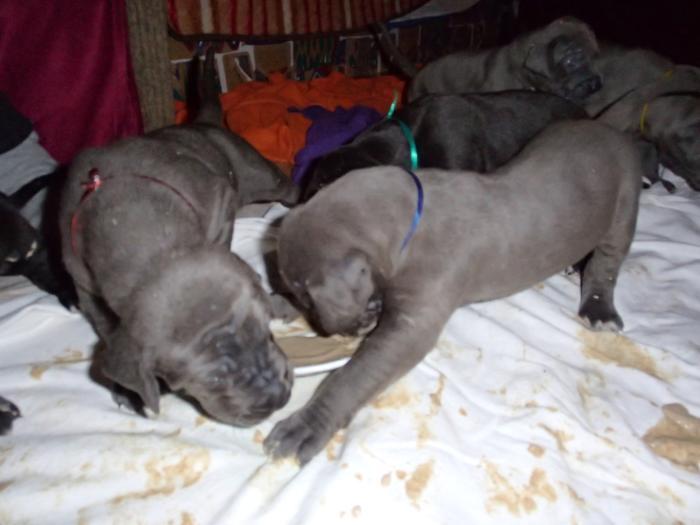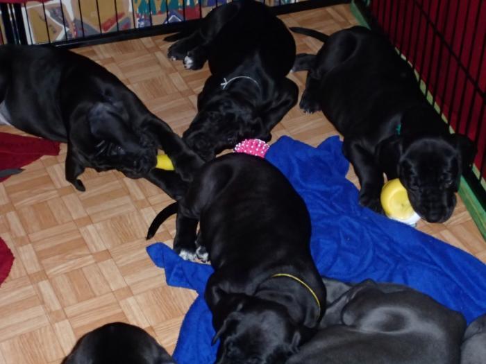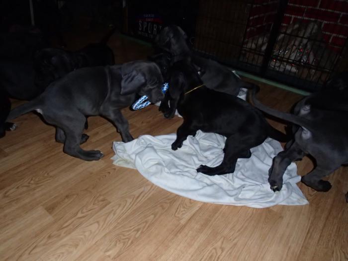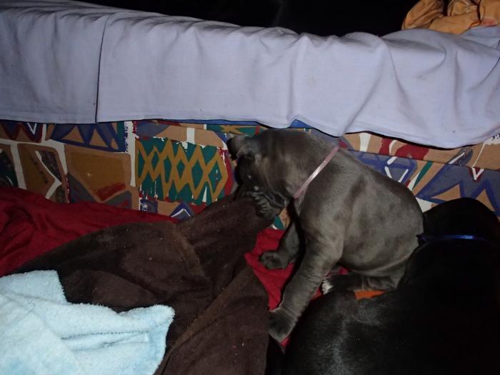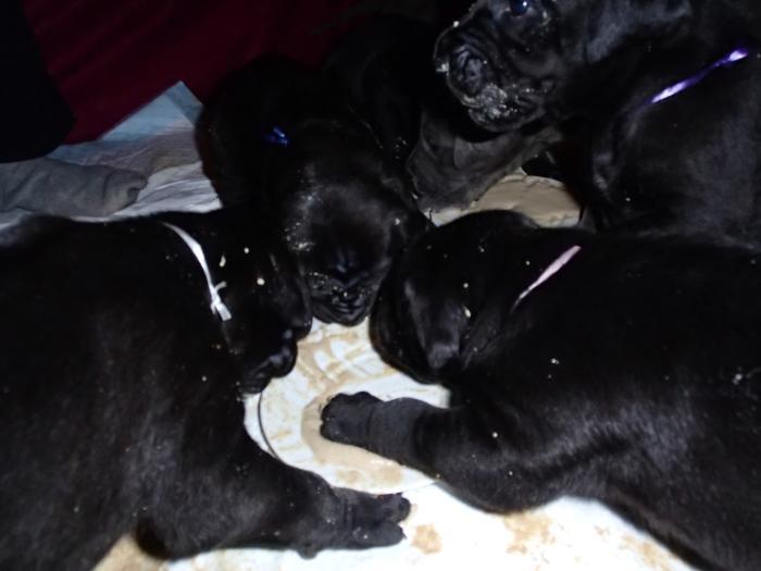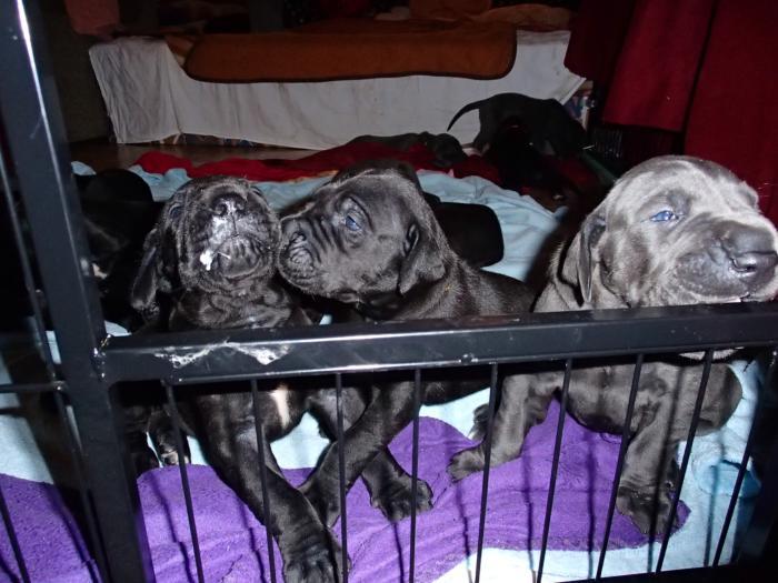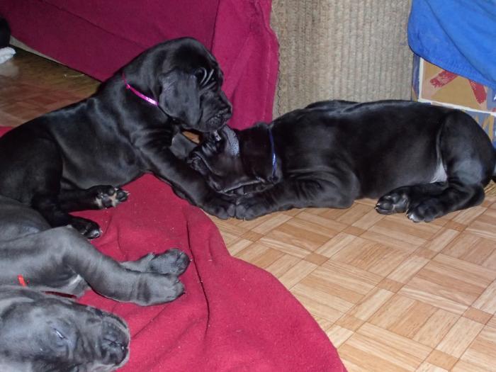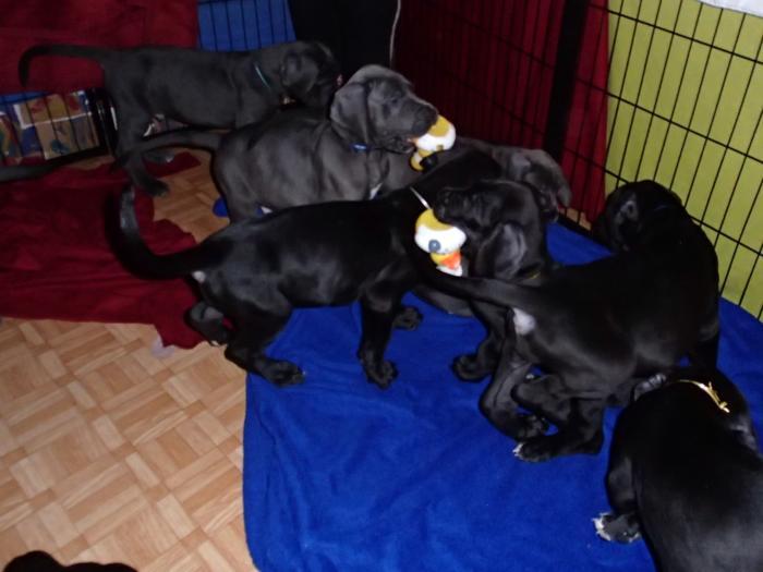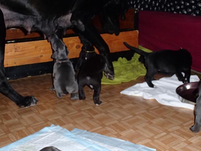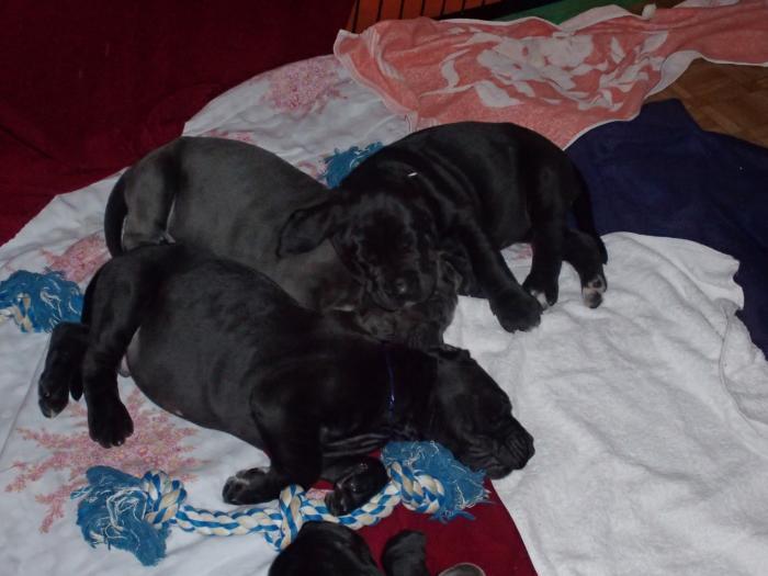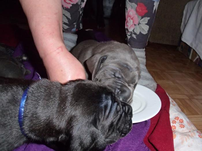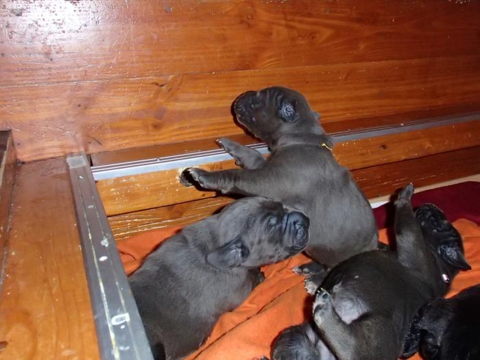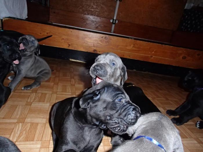 Heute, am 10.01.2018, war es soweit. Es kam die Stunde der Warheit und hier die Auflösung unseres Röntgenbildrätsels.4 Rüden blau 3 Hündinnen blau 3 Rüden schwarz 6 Hündinnen schwarz Mutter und Kinder sind wohlauf und sobald wir durchgeatmet haben, bekommt ihr natürlich täglich neue Bilder. Jetzt heißt es erst eimal die stolze Mama zu unterstützen. Das bedeutet 8 mal am Tag zufüttern.Wir möchten noch einmal allen Besuchern unserer Webseite deutlich machen, dass wir hier Schnappschüsse (also das wahre Leben) einstellen und keine Studioaufnahmen. Auch wenn wir ständig die Unterlagen wechseln, so ist uns doch der Moment des Motives wichtig und wenn da ein Fleck ist, dann ist das eben so.