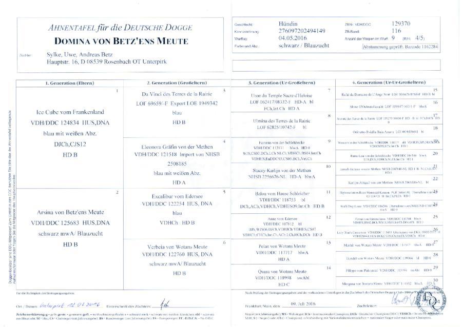 copyright Deutsche Doggen von Betz’ens MeuteWurfankündigungAm 27.06.2022 war Domina bei Ihrem Highlander.Wir dachten schon, Sie möchte Ihn gar nicht mehr loslassen.Am 22.07.2022 hat uns der Ultraschall bestätigt,dass Domina aufgenommen hat.